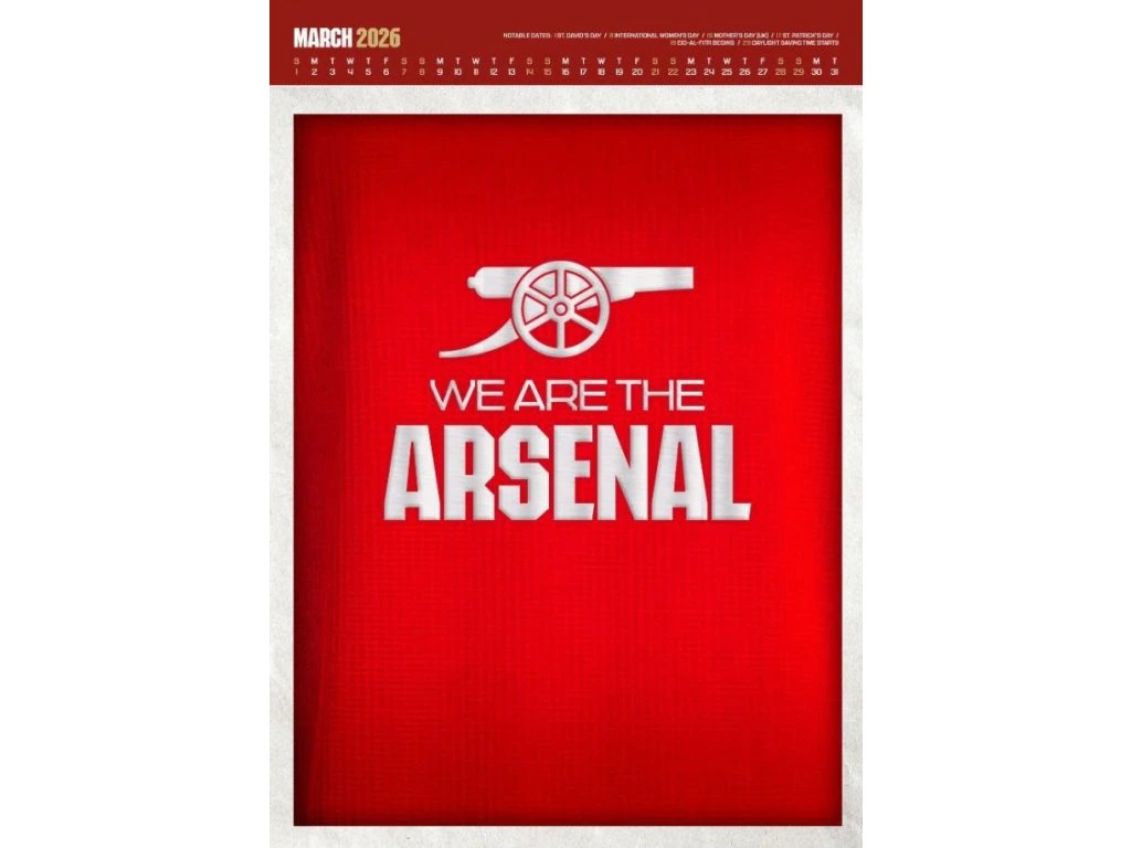 Úvod » Futbalové kluby (všetky) » Premier League (Anglicko) » Arsenal FC » Ostatné » Arsenal Deluxe nástenný kalendár 2026