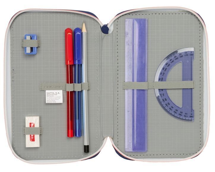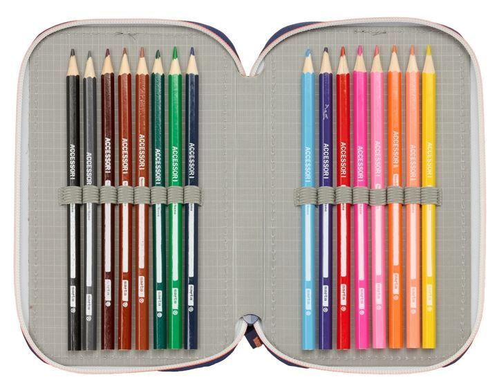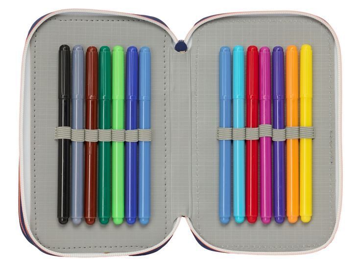 Trojposchodový systém (Triple Plumier): Tri samostatné oddelenia so silnými zipsami zaručujú, že každá ceruzka a fixa má svoje pevné miesto.