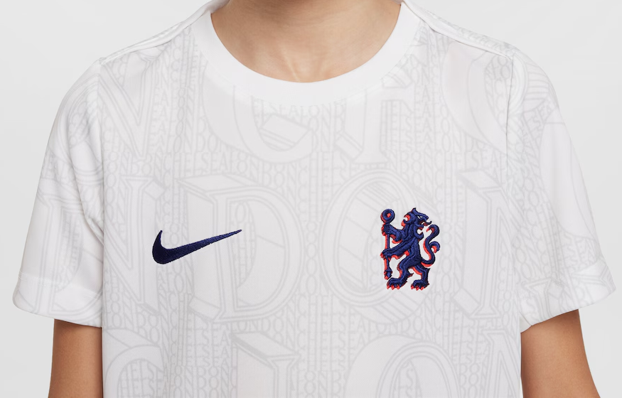 Detský predzápasový dres Chelsea FC (sezóna 2025-2026). Originálny licencovaný produkt Nike.